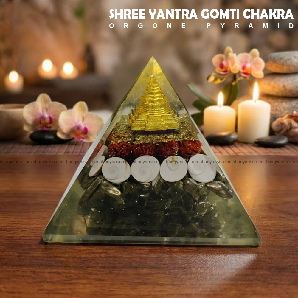 The Shree Yantra is associated with Goddess Lakshmi, symbolizing abundance and financial growth, while Gomti Chakras are believed to bring luck, protection, and stability. The orgonite composition helps transform negative energy into positive vibrations, and the pyramid shape amplifies and directs this energy effectively.