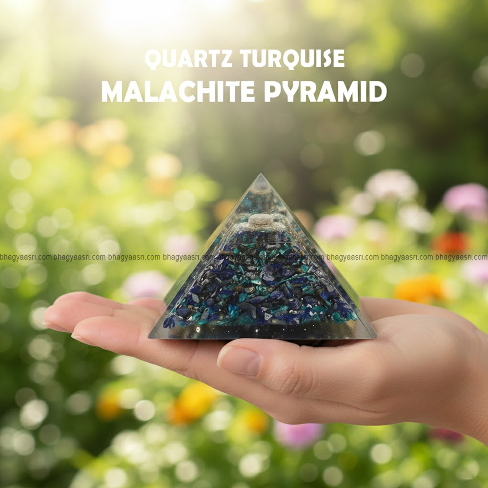 Clear Quartz acts as an energy amplifier, Turquoise is known for protection and communication, and Malachite supports transformation and emotional healing. Together, these stones create a harmonious flow of energy, making this pyramid ideal for meditation, healing practices, and vastu correction.